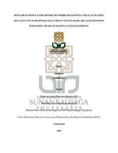 Text (PENGARUH MODUL ELEKTRONIK PKN BERBASIS KONTEN LOKAL SUMATERA SELATAN UNTUK MENINGKATKAN MOTIVASI DAN HASIL BELAJAR KOGNITIF MAHASISWA PGMI UIN RADEN FATAH PALEMBANG Oleh: Mamkua 22204081027 TESIS Diajukan kepada Program Magister (S2) Pendidikan Guru)