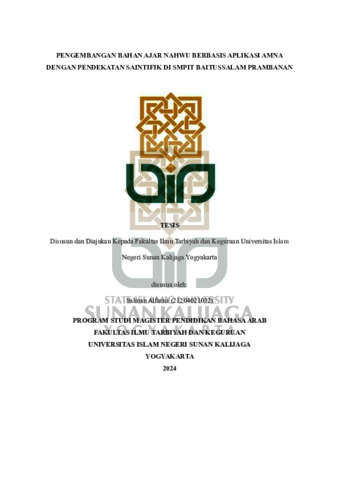 Text (PENGEMBANGAN BAHAN AJAR NAHWU BERBASIS APLIKASI AMNA DENGAN PENDEKATAN SAINTIFIK DI SMPIT BAITUSSALAM PRAMBANAN)