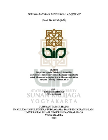 Hanif Mudhoffar, NIM.: 08530064 (2012) PERINGATAN BAGI PENGHAFAL AL-QUR’AN (STUDI MA‘ANI AL-HADIS). Skripsi thesis, UIN SUNAN KALIJAGA YOGYAKARTA.
