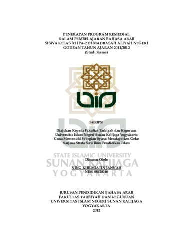 Ning Khilmiatin Jannah, NIM.: 08420016 (2012) PENERAPAN PROGRAM REMEDIAL DALAM PEMBELAJARAN BAHASA ARAB SISWA KELAS X1 IPA-2 DI MADRASAH ALIYAH NEGERI GODEAN TAHUN AJARAN 2011/2012 (STUDI KASUS). Skripsi thesis, UIN SUNAN KALIJAGA YOGYAKARTA.
