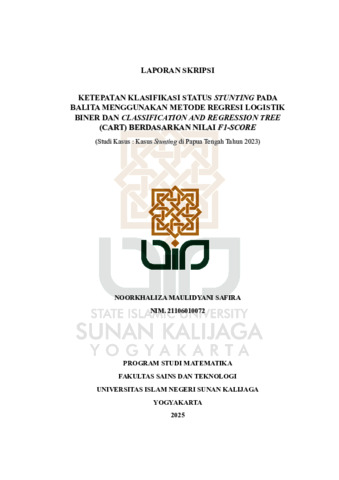 Text (KETEPATAN KLASIFIKASI STATUS STUNTING PADA BALITA MENGGUNAKAN METODE REGRESI LOGISTIK BINER DAN CLASSIFICATION AND REGRESSION TREE (CART) BERDASARKAN NILAI F1-SCORE (STUDI KASUS : KASUS STUNTING DI PAPUA TENGAH TAHUN 2023))