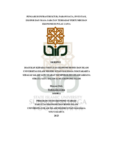 Wahyu Zia Ul haq, NIM.: 16810022 (2023) PENGARUH INFRASTRUKTUR, PARAWISATA, INVESTASI, EKSPOR DAN MASA JABATAN TERHADAP PERTUMBUHAN EKONOMI DI PULAU JAWA. Skripsi thesis, UIN SUNAN KALIJAGA YOGYAKARTA.