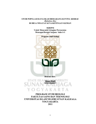 Slamet Riadi, NIM.: 05640027 (2011) STUDI POPULASI DAN LOKASI BERSARANG KUNTUL KERBAU (Bubulcus ibis) DI DESA WISATA FAUNA KETINGAN SLEMAN. Skripsi thesis, UIN SUNAN KALIJAGA YOGYAKARTA.