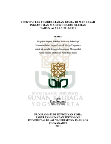 Erna Nuryanti, NIM.: 07670001 (2011) EFEKTIVITAS PEMBELAJARAN KIMIA DI MADRASAH INKLUSI MAN MAGUWOHARJO SLEMAN TAHUN AJARAN 2010/2011. Skripsi thesis, UIN SUNAN KALIJAGA YOGYAKARTA.
