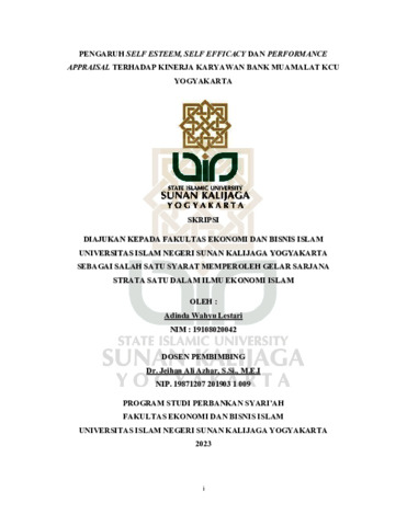 Adinda Wahyu Lestari, NIM.: 19108020042 (2023) PENGARUH SELF ESTEEM, SELF EFFICACY DAN PERFORMANCE APPRAISAL TERHADAP KINERJA KARYAWAN BANK MUAMALAT KCU YOGYAKARTA. Skripsi thesis, UIN SUNAN KALIJAGA YOGYAKARTA.