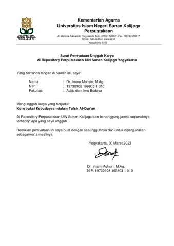Imam Muhsin, - (2022) Konstruksi Kebudayaan dalam Tafsir al-Qur'an. In: Refleksi Kajian Bahasa, Sastra, dan Budaya. Idea Press, Yogyakarta, pp. 253-264. ISBN 978-623-484-010-0