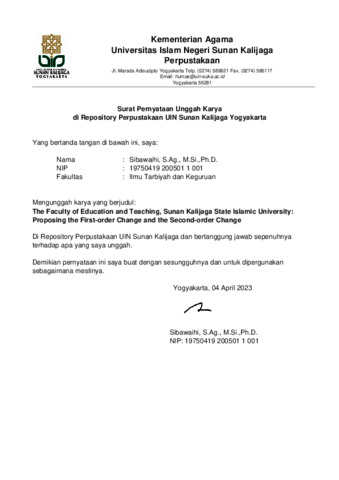 Text (The Faculty of Education and Teaching, Sunan Kalijaga State Islamic University Proposing the First-order Change and the Second-order Change)