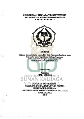 Nasrodin, NIM.: 05530012 (2010) PEMAHAMAN TERHADAP HADIS TENTANG PELARANGAN MEMAKAN DAGING SAPI KARENA PENYAKIT. Skripsi thesis, UIN SUNAN KALIJAGA YOGYAKARTA.