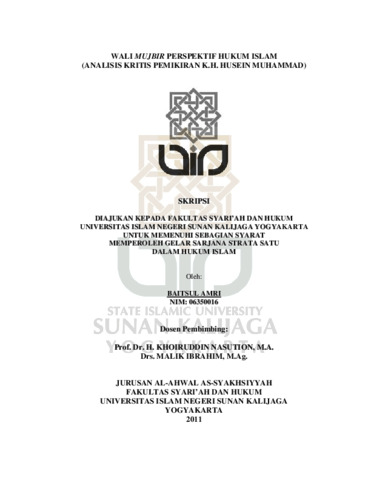 Baitsul Amri, NIM.: 06350016 (2011) WALI MUJBIR PERSPEKTIF HUKUM ISLAM (ANALISIS KRITIS PEMIKIRAN K.H. HUSEIN MUHAMMAD). Skripsi thesis, UIN SUNAN KALIJAGA YOGYAKARTA.