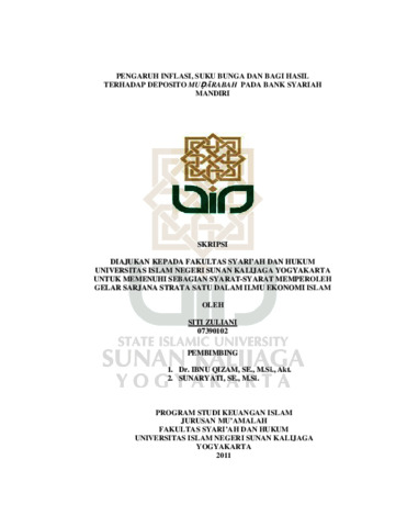 Siti Zuliani, NIM.: 07390102 (2011) PENGARUH INFLASI, SUKU BUNGA DAN BAGI HASIL TERHADAP DEPOSITO MUDARABAH PADA BANK SYARIAH MANDIRI. Skripsi thesis, UIN SUNAN KALIJAGA YOGYAKARTA.