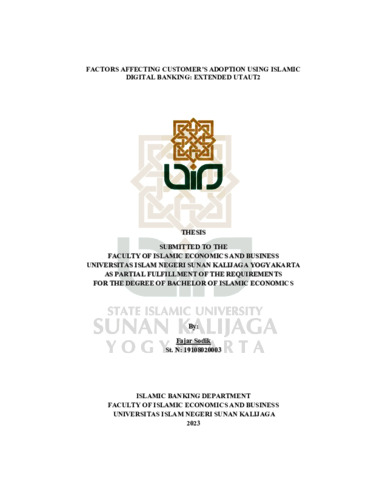 Fajar Sodik, NIM.: 19108020003 (2023) FACTORS AFFECTING CUSTOMER'S ADOPTION USING ISLAMIC DIGITAL BANKING: EXTENDED UTAUT2. Skripsi thesis, UIN SUNAN KALIJAGA YOGYAKARTA.