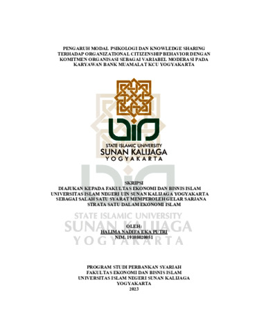 Halima Nadifa Eka Putri, NIM.: 19108020051 (2023) PENGARUH MODAL PSIKOLOGI DAN KNOWLEDGE SHARING TERHADAP ORGANIZATIONAL CITIZENSHIP BEHAVIOR DENGAN KOMITMEN ORGANISASI SEBAGAI VARIABEL MODERASI PADA KARYAWAN BANK MUAMALAT KCU YOGYAKARTA. Skripsi thesis, UIN SUNAN KALIJAGA YOGYAKARTA.