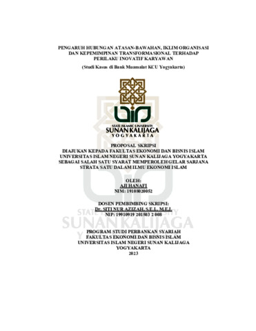 Aji Hanafi, NIM.: 19108020052 (2023) PENGARUH HUBUNGAN ATASAN-BAWAHAN, IKLIM ORGANISASI DAN KEPEMIMPINAN TRANSFORMASIONAL TERHADAP PERILAKU INOVATIF KARYAWAN (STUDI KASUS DI BANK MUAMALAT KCU YOGYAKARTA)). Skripsi thesis, UIN SUNAN KALIJAGA YOGYAKARTA.