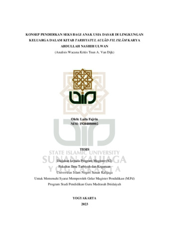 Text (KONSEP PENDIDIKAN SEKS BAGI ANAK USIA DASAR DI LINGKUNGAN KELUARGA DALAM KITAB TARBIYATUL AULÂD FIL ISLÂM KARYA ABDULLAH NASHIH ULWAN (ANALISIS WACANA KRITIS TEUN A. VAN DIJK))