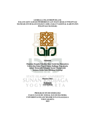 Wahdania, NIM.: 17107020046 (2023) LEMBAGA FILANTROPI ISLAM: DALAM AKTUALISASI PEMBERDAYAAN MASYARAKAT POLEWALI MANDAR (STUDI KASUS BADAN AMIL ZAKAT NASIONAL KABUPATEN POLEWALI MANDAR). Skripsi thesis, UIN SUNAN KALIJAGA YOGYAKARTA.