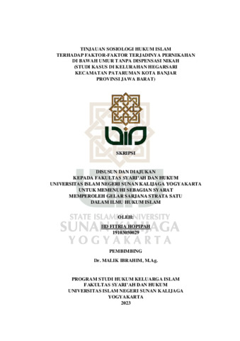 Text (TINJAUAN SOSIOLOGI HUKUM ISLAM TERHADAP FAKTOR-FAKTOR TERJADINYA PERNIKAHAN DI BAWAH UMUR TANPA DISPENSASI NIKAH (STUDI KASUS DI KELURAHAN HEGARSARI KECAMATAN PATARUMAN KOTA BANJAR PROVINSI JAWA BARAT))