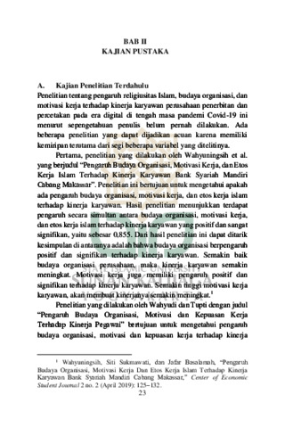 Text (PENGARUH RELIGIUSITAS ISLAM DAN BUDAYA ORGANISASI TERHADAP KINERJA KARYAWAN DENGAN MOTIVASI KERJA SEBAGAI VARIABEL INTERVENING (Studi Kasus CV Citra Pustaka di Kartasura))