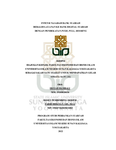 Irsyad Hambali, NIM.: 19108020036 (2023) INTENSI NASABAH BANK SYARIAH BERALIH LAYANAN KE BANK DIGITAL SYARIAH DENGAN PENDEKATAN PUSH, PULL, MOORING. Skripsi thesis, UIN SUNAN KALIJAGA YOGYAKARTA.