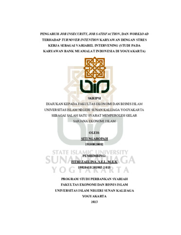 Siti Ngaropah, NIM.: 19108020082 (2023) PENGARUH JOB INSECURITY, JOB SATISFACTION, DAN WORKLOAD TERHADAP TURNOVER INTENTION KARYAWAN DENGAN STRES KERJA SEBAGAI VARIABEL INTERVENING (STUDI PADA KARYAWAN BANK MUAMALAT INDONESIA DI YOGYAKARTA). Skripsi thesis, UIN SUNAN KALIJAGA YOGYAKARTA.