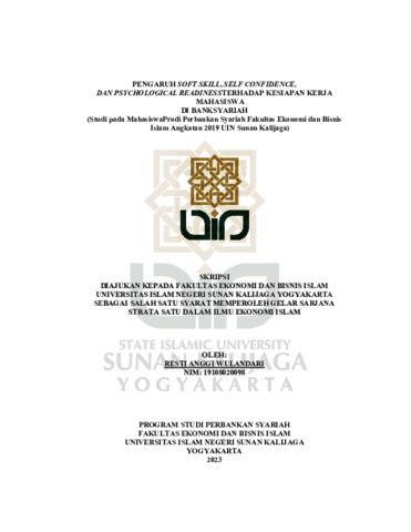 Resti Anggi Wulandari, NIM.: 19108020098 (2023) PENGARUH SOFT SKILL, SELF CONFIDENCE, DAN PSYCHOLOGICAL READINESS TERHADAP KESIAPAN KERJA MAHASISWA DI BANK SYARIAH (STUDI PADA MAHASISWA PRODI PERBANKAN SYARIAH FAKULTAS EKONOMI DAN BISNIS ISLAM ANGKATAN 2019 UIN SUNAN KALIJAGA). Skripsi thesis, UIN SUNAN KALIJAGA YOGYAKARTA.