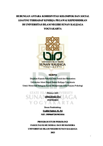 Text (HUBUNGAN ANTARA KOHESIVITAS KELOMPOK DAN SOCIAL LOAFING TERHADAP KINERJA PEGAWAI KEPENDIDIKAN DI UNIVERSITAS ISLAM NEGERI SUNAN KALIJAGA YOGYAKARTA)