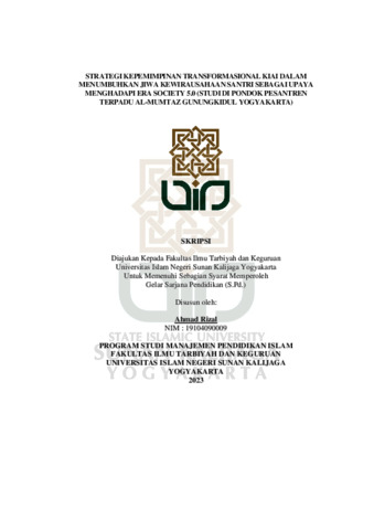 Text (STRATEGI KEPEMIMPINAN TRANSFORMASIONAL KIAI DALAM MENUMBUHKAN JIWA KEWIRAUSAHAAN SANTRI SEBAGAI UPAYA MENGHADAPI ERA SOCIETY 5.0 (STUDI DI PONDOK PESANTREN TERPADU AL-MUMTAZ GUNUNGKIDUL YOGYAKARTA))