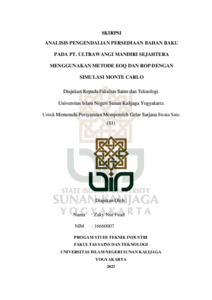 Zaky Nur Fuad, NIM : 16660007 (2023) ANALISIS PENGENDALIAN PERSEDIAAN BAHAN BAKU PADA PT. ULTRAWANGI MANDIRI SEJAHTERA MENGGUNAKAN METODE EOQ DAN ROP DENGAN SIMULASI MONTE CARLO. Skripsi thesis, UIN SUNAN KALIJAGA YOGYAKARTA.