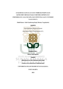 Text (ANALISIS KUALITAS LAYANAN TERHADAP KEPUASAN KONSUMEN MENGGUNAKAN METODE IMPORTANCE PERFORMANCE ANALYSIS (IPA) DAN POTENTIAL GAIN CUSTOMER VALUE (PGCV) (Studi Kasus : Kafe Gandroeng Kopi, Sleman, Yogyakarta))