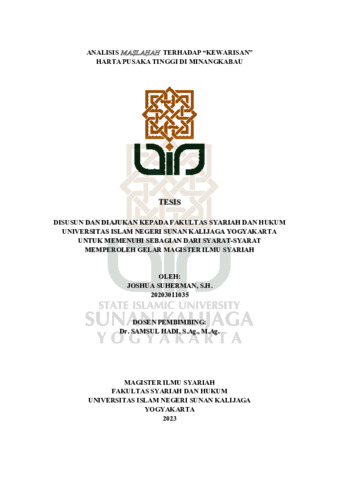 Joshua Suherman, S.H, NIM.: 20203011035 (2023) ANALISIS MASLAHAH TERHADAP “KEWARISAN” HARTA PUSAKA TINGGI DI MINANGKABAU. Masters thesis, UIN SUNAN KALIJAGA YOGYAKARTA.