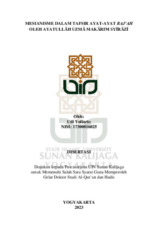 Udi Yuliarto, NIM.: 17300016025 (2023) MESIANISME DALAM TAFSIR AYAT-AYAT RAJ’AH OLEH AYATULLAH UZMA MAKARIM SYIRAZ. Doctoral thesis, UIN SUNAN KALIJAGA YOGYAKARTA.