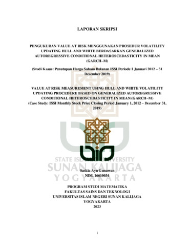 Saskia Ayu Gunawan, NIM: 16610034 (2023) PENGUKURAN VALUE AT RISK MENGGUNAKAN PROSEDUR VOLATILITY UPDATING HULL AND WHITE BERDASARKAN GENERALIZED AUTOREGRESSIVE CONDITIONAL HETEROSCEDASTICITY IN MEAN (GARCH–M) (Studi Kasus: Penutupan Harga Saham Bulanan ISSI Periode 1 Januari 2012 – 31 Desember 2019). Skripsi thesis, UIN SUNAN KALIJAGA YOGYAKARTA.