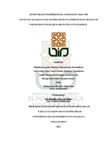 Muhammad Ibrohim Zidni Ilma, NIM.: 18102010015 (2023) KOMUNIKASI INTERPERSONAL MAHASISWA KKN 108 UIN SUNAN KALIJAGA DALAM MELAKUKAN LITERASI MASYARAKAT DI PADUKUHAN NGLEGOK KABUPATEN GUNUNGKIDUL. Skripsi thesis, UIN SUNAN KALIJAGA YOGYAKARTA.