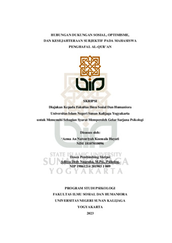 Text (HUBUNGAN DUKUNGAN SOSIAL, OPTIMISME, DAN KESEJAHTERAAN SUBJEKTIF PADA MAHASISWA PENGHAFAL AL-QUR’AN)