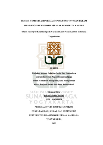 Text (TEKNIK KOMUNIKASI PERSUASIF PENGURUS YAYASAN DALAM MEMBANGKITKAN MOTIVASI ANAK PENDERITA KANKER (Studi Deskriptif Kualitatif pada Yayasan Kasih Anak Kanker Indonesia Yogyakarta))
