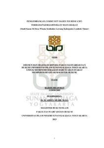 Habiburrahman, S.H, NIM.: 21203012085 (2023) PENGEMBANGAN COMMUNITY BASED TOURISM (CBT) TERHADAP KESEJAHTERAAN MASYARAKAT (STUDI KASUS DI DESA WISATA SEMBALUN LAWANG KABUPATEN LOMBOK TIMUR). Masters thesis, UIN SUNAN KALIJAGA YOGYAKARTA.
