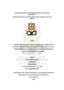 Yeni Sebriyani, S.H., NIM.: 21203012089 (2023) DAMPAK PERCERAIAN TERHADAP PERILAKU REMAJA PEREMPUAN (Studi Kasus Di Desa Longos Kecamatan Gapura Kabupaten Sumenep Madura). Masters thesis, UIN SUNAN KALIJAGA YOGYAKARTA.