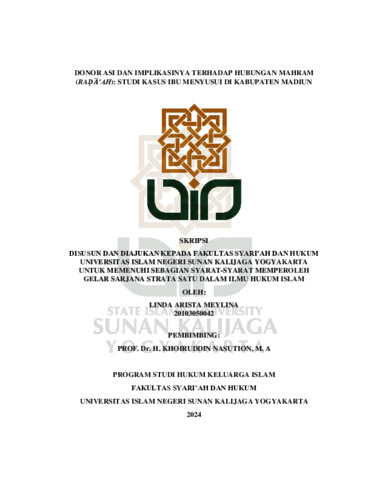 Linda Arista Meylina, NIM.: 20103050042 (2024) DONOR ASI DAN IMPLIKASINYA TERHADAP HUBUNGAN MAHRAM (RADA’AH): STUDI KASUS IBU MENYUSUI DI KABUPATEN MADIUN. Skripsi thesis, UIN SUNAN KALIJAGA YOGYAKARTA.