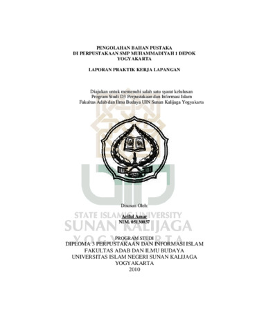 Ariful Amar, NIM.: 05130037 (2010) PENGOLAHAN BAHAN PUSTAKA DI PERPUSTAKAAN SMP MUHAMMADIYAH 1 DEPOK YOGYAKARTA. Skripsi thesis, UIN SUNAN KALIJAGA YOGYAKARTA.