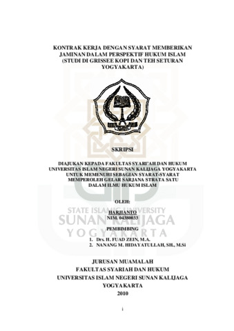 Text (KONTRAK KERJA DENGAN SYARAT MEMBERIKAN JAMINAN DALAM PERSPEKTIF HUKUM ISLAM (STUDI DI GRISSEE KOPI DAN TEH SETURAN YOGYAKARTA))
