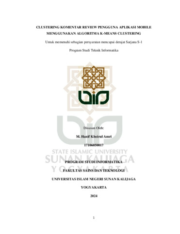 M. Hanif Khoirul Amri, NIM.: 17106050017 (2024) CLUSTERING KOMENTAR REVIEW PENGGUNA APLIKASI MOBILE MENGGUNAKAN ALGORITMA K-MEANS CLUSTERING. Skripsi thesis, UIN SUNAN KALIJAGA YOGYAKARTA.