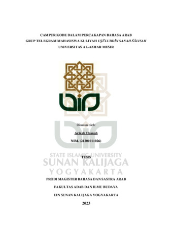 Text (CAMPUR KODE DALAM PERCAKAPAN BAHASA ARAB GRUP TELEGRAM MAHASISWA KULIYAH USULUDDIN SANAH SALISAH UNIVERSITAS AL-AZHAR MESIR)