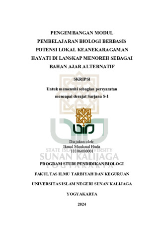 Ikmal Maulanal Huda, NIM.: 18106080001 (2024) PENGEMBANGAN MODUL PEMBELAJARAN BIOLOGI BERBASIS POTENSI LOKAL KEANEKARAGAMAN HAYATI DI LANSKAP MENOREH SEBAGAI BAHAN AJAR ALTERNATIF. Skripsi thesis, UIN SUNAN KALIJAGA YOGYAKARTA.