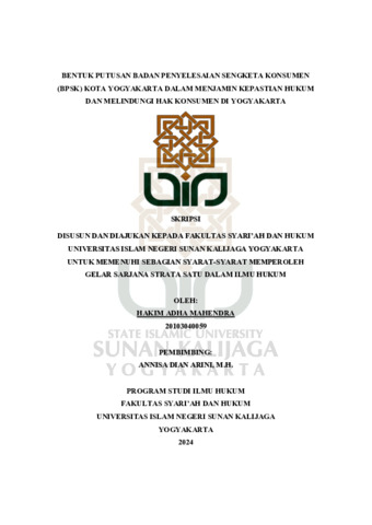 Text (BENTUK PUTUSAN BADAN PENYELESAIAN SENGKETA KONSUMEN (BPSK) KOTA YOGYAKARTA DALAM MENJAMIN KEPASTIAN HUKUM DAN MELINDUNGI HAK KONSUMEN DI YOGYAKARTA)