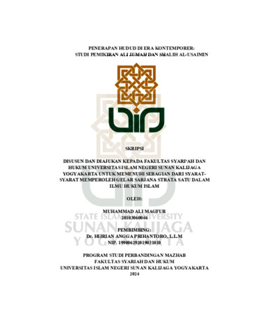 Muhammad Ali Magfur, NIM.: 20103060046 (2024) PENERAPAN HUDUD DI ERA KONTEMPORER: STUDI PEMIKIRAN ALI JUMAH DAN SHALIH AL-USAIMIN. Skripsi thesis, UIN SUNAN KALIJAGA YOGYAKARTA.