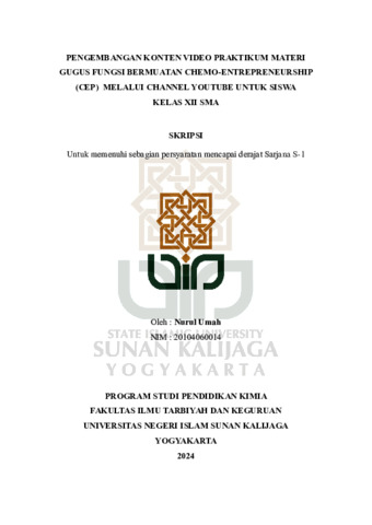 Nurul Umah, NIM.: 20104060014 (2024) PENGEMBANGAN KONTEN VIDEO PRAKTIKUM MATERI GUGUS FUNGSI BERMUATAN CHEMO-ENTREPRENEURSHIP (CEP) MELALUI CHANNEL YOUTUBE UNTUK SISWA KELAS XII SMA. Skripsi thesis, UIN SUNAN KALIJAGA YOGYAKARTA.