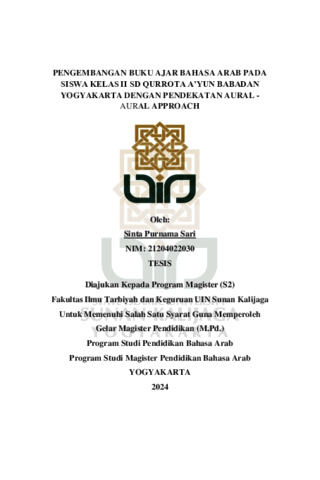 Sinta Purnama Sari, NIM.: 21204022030 (2024) PENGEMBANGAN BUKU AJAR BAHASA ARAB PADA SISWA KELAS II SD QURROTA A’YUN BABADAN YOGYAKARTA DENGAN PENDEKATAN AURAL -AURAL APPROACH. Masters thesis, UIN SUNAN KALIJAGA YOGYAKARTA.