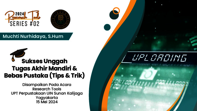 Muchti Nurhidaya, S.Hum, - (2024) Research Tools 2024 Series #02: Sukses Unggah Tugas Akhir Mandiri & Bebas Pustaka (Tips & Trik). Tim Research Tools 2024 Perpustakaan UIN Sunan Kalijaga.
