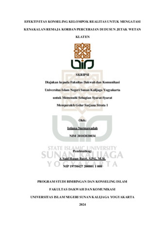 Text (EFEKTIVITAS KONSELING KELOMPOK REALITAS UNTUK MENGATASI KENAKALAN REMAJA KORBAN PERCERAIAN DI DUSUN JETAK WETAN KLATEN)