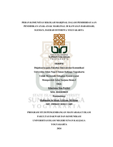 Kharisma Nisa Pertiwi, NIM.: 20102030029 (2024) PERAN KOMUNITAS SEKOLAH MARJINAL DALAM PEMBERDAYAAN PENDIDIKAN ANAK-ANAK MARGINAL DI KAWASAN BABARSARI, SLEMAN, DAERAH ISTIMEWA YOGYAKARTA. Skripsi thesis, UIN SUNAN KALIJAGA YOGYAKARTA.