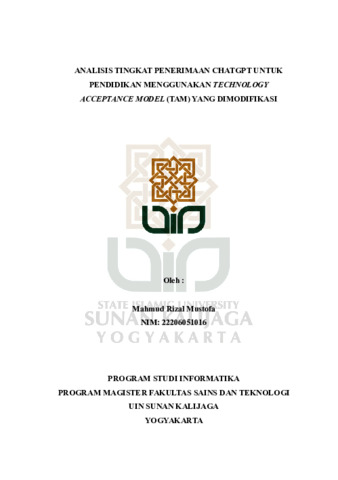 Mahmud Rizal Mustofa, NIM.: 22206051016 (2024) ANALISIS TINGKAT PENERIMAAN CHATGPT UNTUK PENDIDIKAN MENGGUNAKAN TECHNOLOGY ACCEPTANCE MODEL (TAM) YANG DIMODIFIKASI. Masters thesis, UIN SUNAN KALIJAGA YOGYAKARTA.